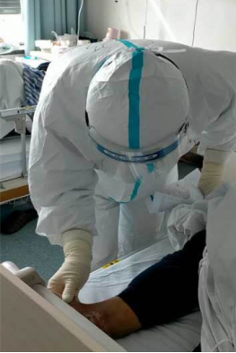 虽然我们都已在临床一线工作了很多年,但较少有机会接受传染病防护培训。因此,为了做好自我防护,也为了尽可能地帮助更多病人,我们反复穿上脱下防护服,大家互相监督,确保每个环节都熟练无误。虽然每次试穿都要耗费近40分钟,但我们毫无怨言,因为我们知道自己即将要面对的是无情肆虐的“病魔”,防护服便是我们的盔甲。