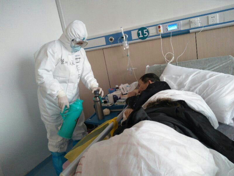 2月14日当天,还有另外两位患者也出院了,他们也是我接诊收治的病患。当初他们来的时候,走路显得十分困难,只能扶着墙走,我们把他们扶进病房。询问病史采集病例的时候,我才得知他们是夫妻,其中妻子病情更重,呼吸困难,护士把他们安排在一起,以便相互照应、相互鼓励,毕竟能看到对方也是一种心灵慰藉,尤其在这么困难的时刻。医疗组为他们制定了详细治疗方案,经过医护人员的精心护理,以及抗病毒、止咳、平喘、清热解毒、抗炎和补液等治疗过程,最后复查时CT显示好转,症状明显减轻,两次核酸检测为阴性,符合出院标准。我曾经治愈过那么多病人,从没有想过要得到什么回报。这次支援湖北,一想到能够治好湖北人民的疾病,得到他们的认可,没有辜负国家与人民的期望,我心中就很有成就感。