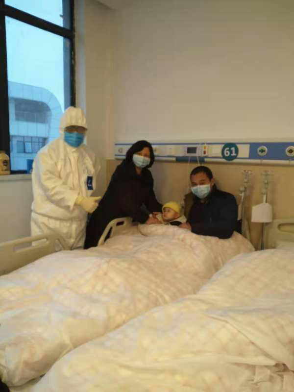 2月14日下午,我听说病房里的一家三口在上午都出院了,真心为他们高兴,每个患者背后都有心酸的故事。他们夫妇二人都患了新冠肺炎,一个9个月的婴儿因为太小而没有做CT,但是核酸检测显示阳性,因此也被确诊为新冠肺炎。这对夫妻的另一个孩子仅4岁,目前正在进行隔离观察,想一想真是心疼,他们夫妇二人的压力可想而知,不仅自己感染住院,并且连带家人也受累。如今,我也是一名父亲了,每当查房到这个病房,看着小孩子也被传染,就非常揪心,同时也更加坚定信心,一定要仔细观察他们的病情,及时跟踪检查结果,以便调整治疗方案,争取早日治好他们。终于,在全体医护人员的共同努力下,他们一家三口出院了。