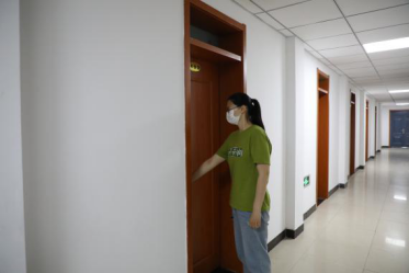 学生在入住宿舍演练中,工作人员核验学生证件,进行入住信息登记,为学生发放健康包,最后引导学生入住宿舍。