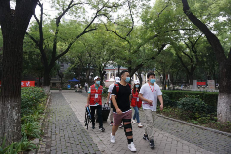 杏林如画初秋至,医心医意盼君来。在校内迎新现场,我院研究生会、学生会的13名志愿者统一身着“山大红”志愿者服装,面带微笑,用心服务,协助新生办理报到手续,热情解答新生同学咨询的问题,并安排专人帮助一名行走不便的新生转运行李、完成注册、入住宿舍。