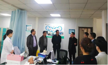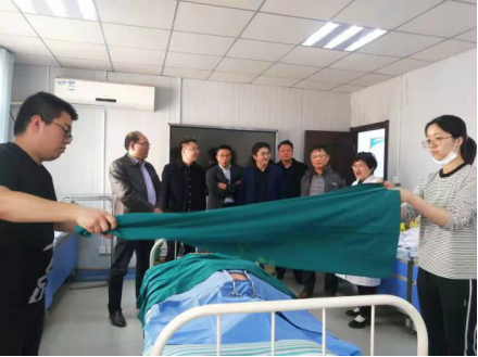 牟道玉一行来到医院临床技能培训中心,与老师和学生们进行了亲切交谈,详细了解大家的训练及生活情况,充分肯定了大家的辛勤付出,嘱托选手及老师放松心情、注意身体、沉着应对,在第十届中国大学生医学技术技能大赛华东分区赛中赛出我校的形象和水平。