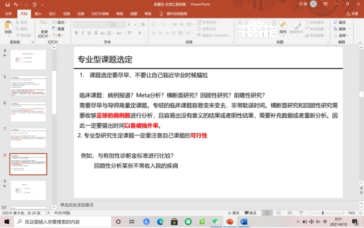 首先,郭星宏和赵达旺依次为大家分享了学习方法和科研经验。郭星宏建议大家在选定课题时切忌选择冷门领域,注意和导师加强沟通交流,尽早确定研究方向,并建议有条件的同学申请联合培养或者攻读博士,努力把握进一步学习提升的机会。赵达旺以自己的课题为例,为大家讲述了作为一名专业性硕士如何兼顾科研及临床工作,建议同学们要善于观察,主动思考,脚踏实地,从点滴积累。接下来,同学们积极进行线上交流和互动,对于大家在科研中困惑,郭星宏和赵达旺一一进行详细解答。