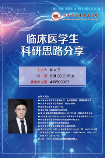 为了加深同学们对未来科研道路的了解,更好地规划学习生活,9月28日,临床医学院成功举办第二期“医海领航”系列活动,活动主题为“临床医学生科研思路分享”,邀请临床医学院硕士生导师、2020届博士毕业生陈大卫作为2017级和2018级本科生带来科研经验分享。