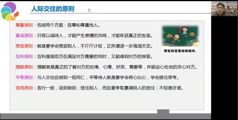 本次讲座围绕“人际交往”展开,主讲人马道伟结合现实情况和经典故事,分别从人际交往的原则、友谊的定义、让友谊不褪色的方法三方面进行了全面详细的阐述。首先,马道伟从尊重原则、真诚原则、宽容原则、互利原则、理解原则、平等原则、信用原则等七个原则出发,简要介绍了“人际交往”的原则。随后,他以马克思的经典名言为切入点,对“友谊”的内核进行了通俗易懂的分析。接下来,马道伟结合现实情况,并伴以生动鲜活的案例,从多个方面多个维度对如何“让友谊不褪色”进行了分析说明。最后,他提出了保持联系、牢记重要节日等朋友之间相处的建议,并提醒同学们重视心理健康状况,遇到困难主动寻求帮助,积极解决问题。