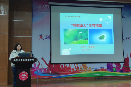 11月17日,临床医学院驻齐鲁医院本科生在趵突泉校区举办“走进心灵”专题讲座,邀请山东大学学生心理健康教育与咨询中心兼职教师、公共卫生学院资深辅导员赵婧婧担任主讲人,本次活动由宋亚静主持,驻齐鲁医院2017级、2018级全体本科生参加。
