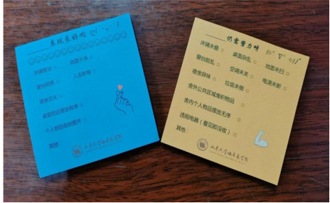 学院坚持勤走访、常检查的工作模式,制定《临床医学院宿舍安全卫生评分标准》和打分表,将宿舍卫生标准量化、细化。每周走访学生宿舍,检查宿舍卫生情况,重点排查消防安全隐患,并定制宿舍检查创意“便利贴”,直观展示宿舍得分、扣分点,便于学生后期整改,实现了“院-生”间卫生检查的定向反馈。每月汇总校内外全体学生宿舍检查结果,按照等级在院网进行公示,实现宿舍检查工作的程序化、透明化。