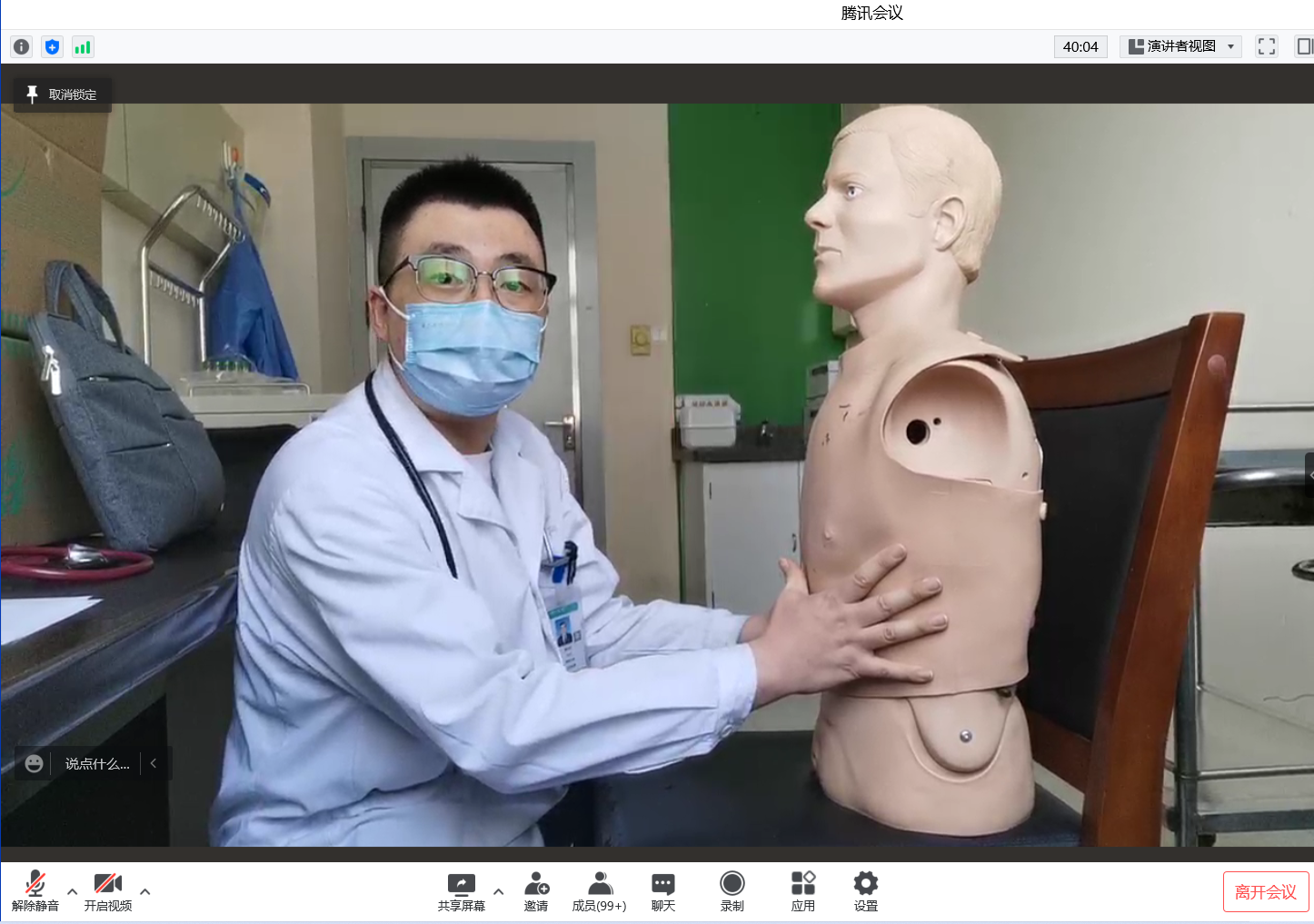 理论课教学方面,诊断学有着丰富的教学资源和多年的经验,尽管时间仓促,也丝毫没有影响教学工作的开展。但检体诊断学实验课需要大量的实际动手操作,将其改为线上教学,对于学生和教师都是一大挑战。为了不影响学生们的学习进度和学习质量,教研室结合前期积累的线上教学经验,将查体模型引入直播课堂,开拓出线上课程自学、模型辅助直播授课与线下互动学习相结合、教学评价相融合、讨论贯穿全过程的线上实验教学新模式。线上课程学习方面,教研室利用前期制作的国家一流线上课程-诊断学、诊断学实验课程,在本学期伊始即做好了应对疫情的预案和准备,全力做好了在线课程和教学资源的维护,保证了学生利用线上课程开展自学和自我评估。直播授课互动阶段,教师们选用雨课堂、腾讯会议等教学平台,将检体诊断学实验课调整为模型演示辅助讲解直播-查体练习结合讨论答疑-随堂考核促进形成性评价的线上授课方式。教师讲解阶段用线上直播和视频讲解相结合的方式,利用查体模型讲解体格检查的操作步骤、手法及关键点,最大可能的还原现场教学效果;查体练习阶段利用学生们集中在校园更便于开展线下互助学习的优势,引导同学之间互相查体,教师进行点评、纠正手法;学生们在练习过程中发现问题进行提问、讨论,教师第一时间解答疑惑,学生们学习热情高涨、纷纷表示收获颇丰;互动练习之后,为帮助学生及时理解和掌握相关知识,保证学习效果,教师们在课前准备了测试题,制定了统一的评分标准,采用小组讨论、提问、抽查等多种方式对学生进行随堂测试。结合线上课程的单元测试和试题解析,既保证了教学标准不降低,又将评价有机地融入了教与学。
