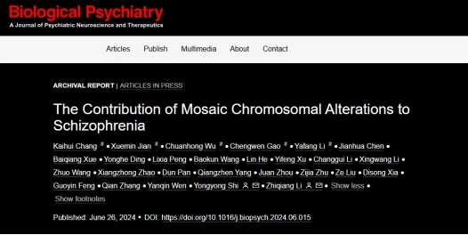 Professor Zhiqiang Li and his research team at the Biomedical Sciences Institute, Medical College, have published a research article in Biological Psychiatry (https://doi.org/10.1016/j.biopsych.2024.06.015), a leading journal in neuroscience and psychiatry. The paper, titled "The Contribution of Mosaic Chromosomal Alterations to Schizophrenia," investigates the crucial role of early developmental somatic copy number variations (sCNVs) in schizophrenia.