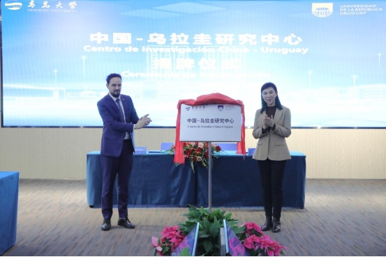 During the signing and unveiling ceremony, Hu Jinyan and Rodrigo Arim signed the agreement to jointly establish the "Joint Sino-Uruguayan Bio-Nanopharmaceutical Laboratory" and unveiled the plaque. Sebastián Bandera and Zhen Zhu unveiled the plaque for the "China-Uruguay Research Center."