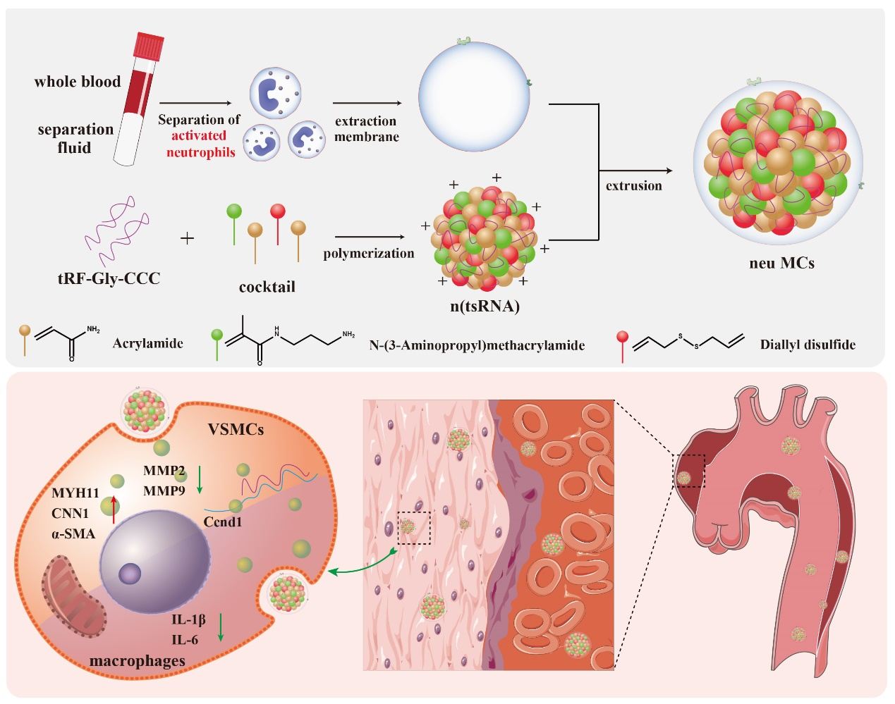 To address this challenge, Tao Yu's team developed activated neutrophil membrane bionanoparticles (neu MCs), which consist of tRF-Gly-CCC-loaded polymer nanoparticles at their core and an outer layer made from activated neutrophil membranes. These membranes serve a dual purpose: they protect the stability of tRF-Gly-CCC while also facilitating targeted delivery to the AAD site. In conclusion, this study identifies tRF-Gly-CCC as a novel therapeutic target for AAD. The researchers successfully constructed neutrophil membrane-mimicking nanoparticles (neu MCs) to enable the in vivo delivery of gene therapies, aiming to reduce AAD mortality in mice.