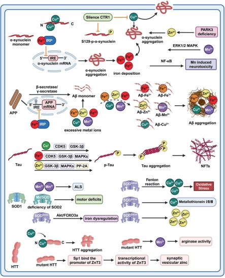 Crosstalk between dysregulation of metal ions and pathological proteins in neurodegenerative diseases