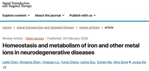 Recently, the research group of Prof. Junxia Xie, Prof. Ning Song Ning and Associate Prof. Leilei Chen from the Institute of Brain Science and Disease has published a review article titled "Homeostasis and metabolism of iron and other metal ions in the neurodegenerative diseases" in the Nature sub-journal “Signal Transduction and Targeted Therapy” (STTT, with an impact factor 40.8), which has been reported by brainnews in the section of Frontier Progress in Brain Science on February 8, 2025. The first author of this review is Leilei Chen, who is a specially-appointed professor of Institute of Brain Science and Disease, and a recipient of Natural Science Foundation of Shandong Province-Outstanding Youth Foundation. Professor Song Ning, the leader of the young innovation team of higher education institutions in Shandong province, is listed as a co-author. The corresponding author of this review is Prof. Junxia Xie, who is the dean of the Institute of Brain Science and Disease, expert receiving special government allowance from the state council, national outstanding science and technology worker, vice-supervisor of the Chinese Neuroscience Society, and Taishan scholar of Shandong province. The Institute of Brain Science and Disease is listed as both the primary and corresponding affiliation. This work was supported by grants from National Natural Science Foundation of China, Natural Science Foundation of Shandong Province-Outstanding Youth Foundation, and Qingdao Natural Science Foundation.